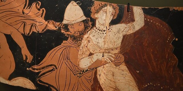 Nunc quoque est novum templum deae frūmentī. Nam Cerēs, ubi Prōserpinam nōn invenit, ad casam puerī Graecī Triptolemī venit quōcum diū habitat. Dea puerum miserum cūrat. Triptolemus igitur, quī deam frūmentī nunc amat, templum ēgregium deae prope Athēnās aedificat. Templum ōrnāmenta pulchra habet et monumentum pūblicum est.