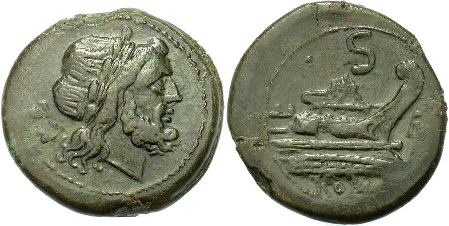 Sāturnus, quem Iuppiter vīcerat, dē caelō ad terram fūgit et in Ītaliam nāvigāvit. Fugitīvus ad rēgem Iānum, quī tum terram regēbat, magna beneficia ferēbat. Populī antīquī Ītaliae erant ferī et sine cultū lēgibusque vīvēbant. Populī domōs nōn habēbant sed in cavernīs aut in arboribus habitābant. Nucēs et frūctūs et crūdam carnem edēbant. Sāturnus igitur lēgēs dedit ēt populōs docuit domōs aedificāre et agrōs colere et cibum coquere. Prō hīs beneficiīs, Iānus Sāturnō grātiās agēbat. Postquam Sāturnus ab Ītaliā nāvigāvit, Iānus populōs celebrāre hunc deum voluit. Ergō, ubi nummōs faciēbat, ex ūnā parte imāginem capitis Iānī, ex alterā parte imāginem nāvis exprimēbat. Ubi puerī Rōmānī lūdēbant, nummōs in sublīme iactābant et "Capita!" aut "Navia!" exclāmābant.